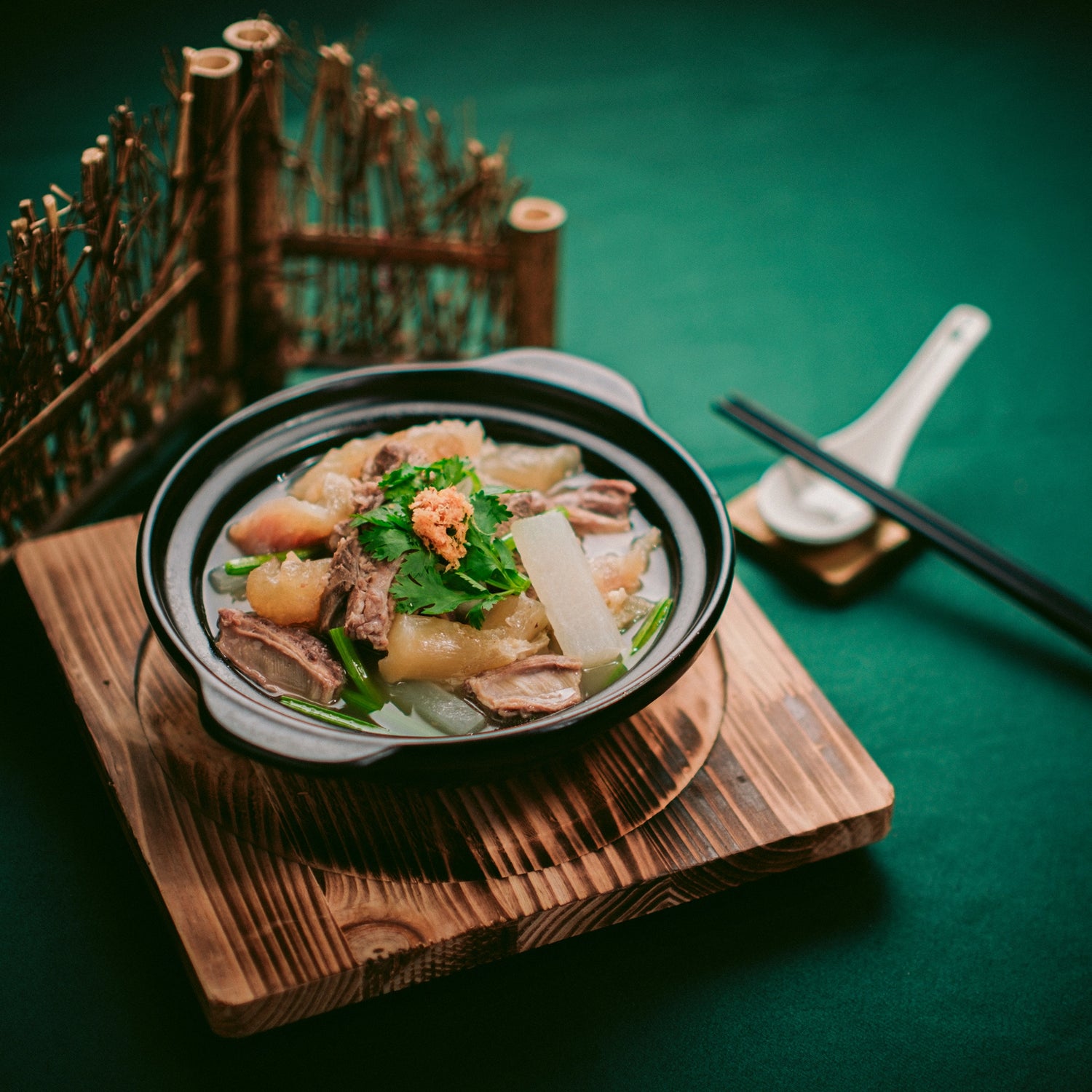 Experience the rich flavors of our Poached Beef Brisket with Radish in Soup, a culinary masterpiece at Moon Lok Chiu Chow. Tender beef brisket stewed to perfection pairs harmoniously with the sweet radish, creating a mouthwatering combination. The clear and refreshing beef bone broth complements the dish, with the radish absorbing the rich flavors of the soup. Despite its seemingly simple appearance, this dish entails intricate preparation, reflecting our dedication to culinary craftsmanship. Experience this culinary delight at Moon Lok Chiu Chow today!