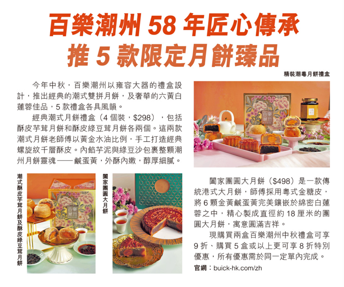 百樂潮州58年匠心傳承 推5款限定月餅臻品