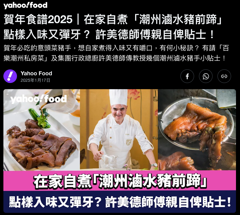 賀年食譜2025︱在家自煮「潮州滷水豬前蹄」 點樣入味又彈牙? 許美德師傅親自俾貼士!