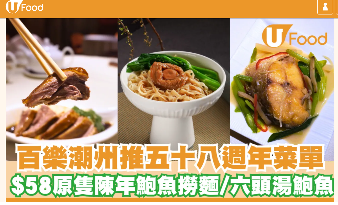 百樂潮州推全新五十八週年菜單 $58原隻陳年鮑魚撈麵/六頭湯鮑魚