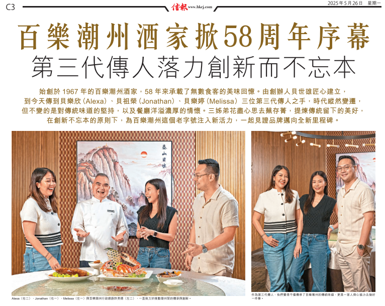 百樂潮州酒家掀58周年序幕 第三代傳人落力創新而不忘本