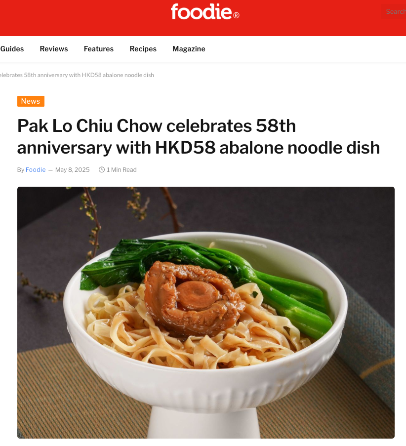 Pak Lo Chiu Chow celebrates 58th anniversary with HKD58 abalone noodle dish