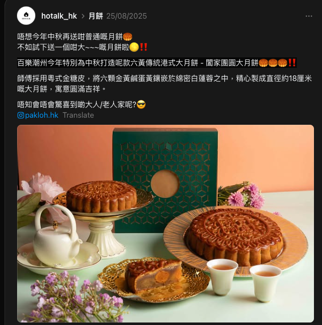 百樂潮州今年特別為中秋打造呢款六黃傳統港式大月餅 - 闔家團圓大月餅!