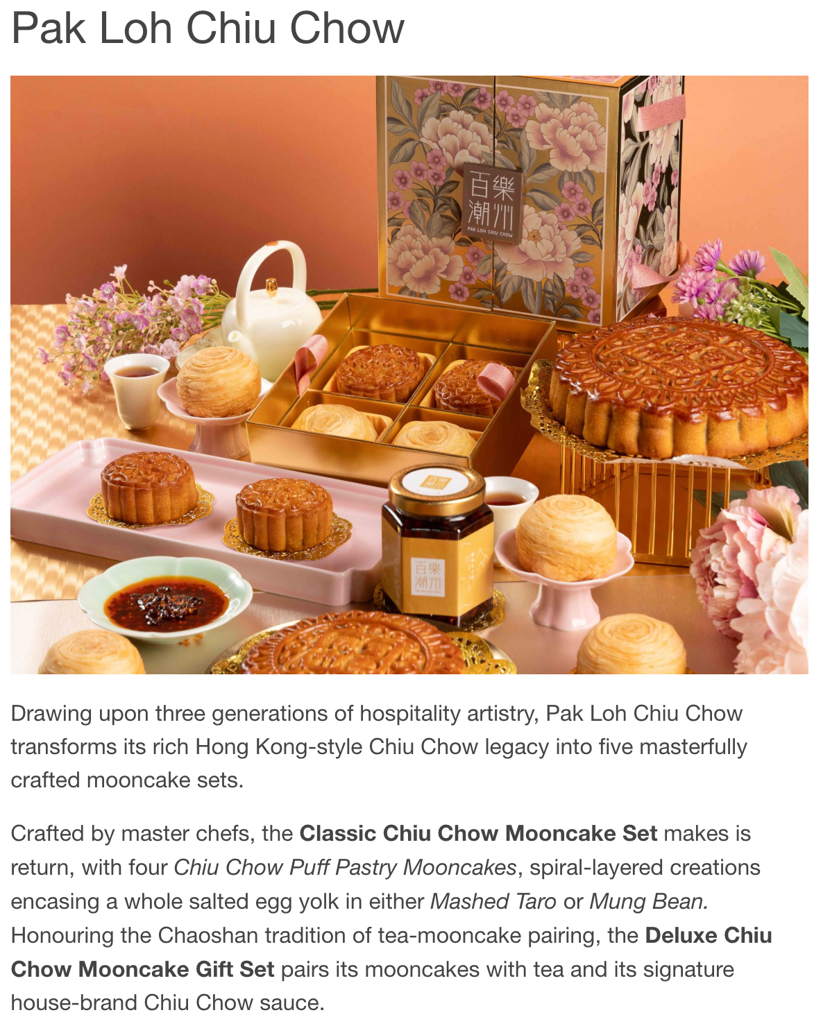 百樂潮州推出五款限定禮盒 酥皮芋茸/酥皮綠豆茸/蛋黃白蓮蓉/陳皮豆沙
