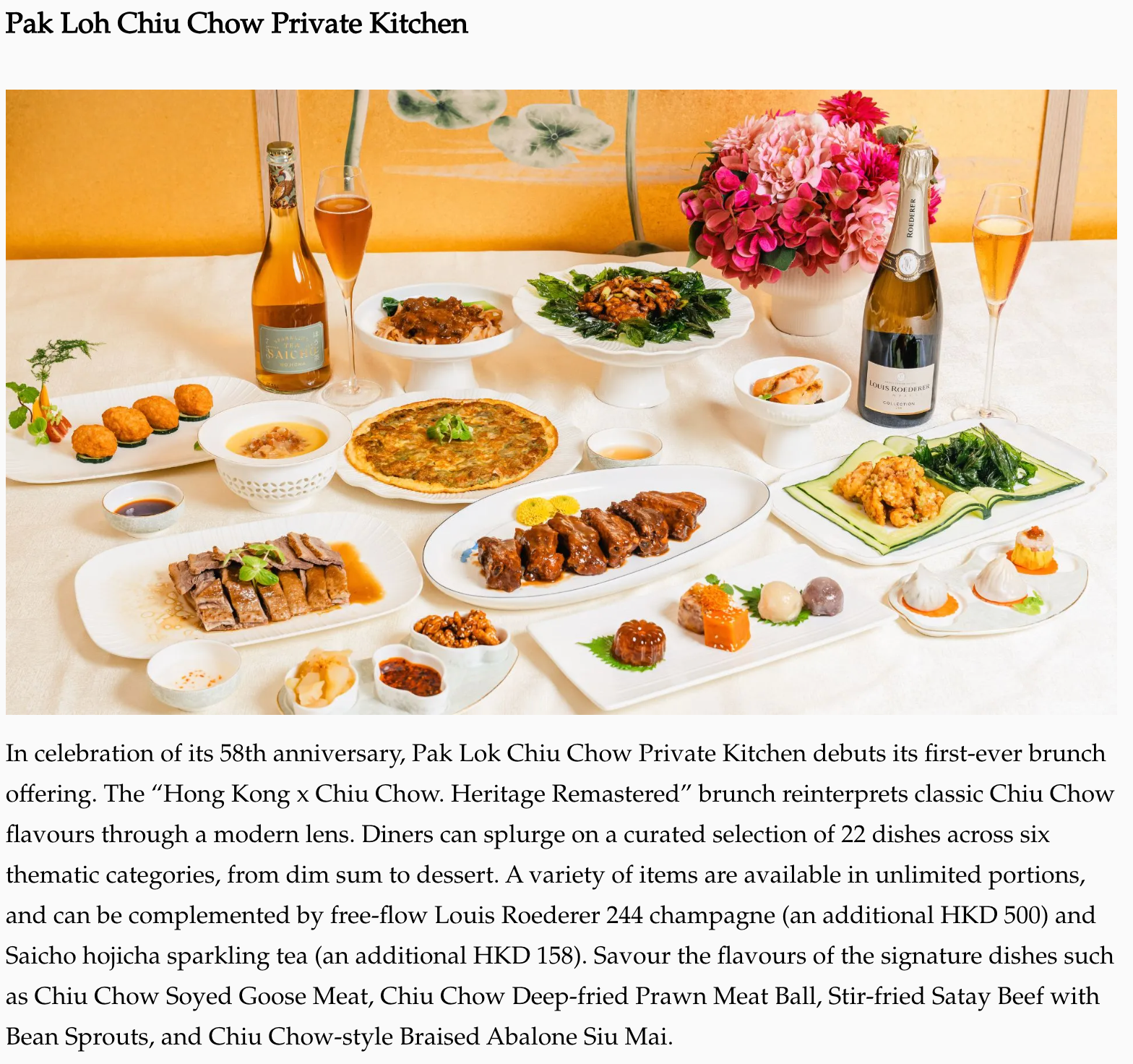 百樂潮州私房菜首創假日早午餐 $580品嘗22道精采潮菜